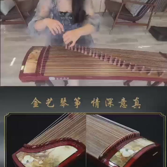 Brand: JinYi(金艺乐器) Instrument: Guzheng/Zither Serial name: 彩薇(Cai Wei) Model #JYT-002 Category: Intermediate level & beyond Soundboard material: Lankao top grade paulownia Bridge: Ebony String: 21 strings Top/other finish: African Rosewood sandalwood Dimensions: Length: ~163cm; width: ~34; thickness: ~7.5cm Weight: >10kg+ Package:~170*45*36cm Color: 1 Origin: China Shipping: free shipping is applied to most countries, such as Europe, Canada, Asia & Australasia etc. For details pls contact CS. Product warranty: Yes(See return policy for details) *Included: Solid wood tuner, premium guzheng bag, bridges, bridge positioning guide, finger picks, tape & guzheng stand.